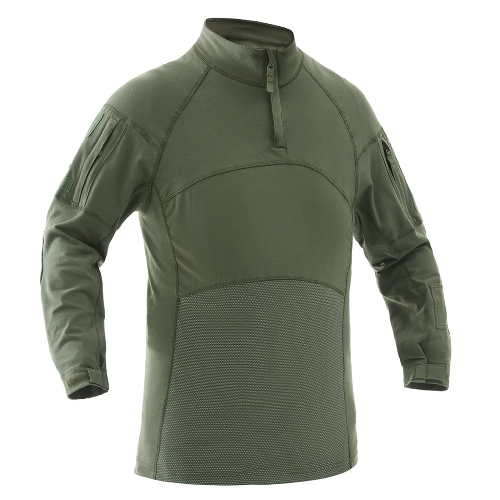 The sleeves and shoulders are made from a rugged, lightweight Polyester/Cotton rip-stop fabric to withstand abrasion from slings and gear. The entire shirt is constructed with high-quality stitching, including a locking process at the hem to prevent fraying and ensure a long service life through rigorous field use.